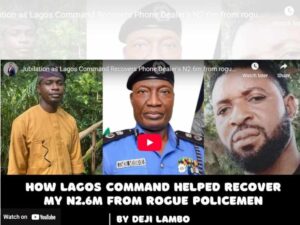 Jubilation as Lagos Command Recovers Phone Dealer’s N2.6m from rogue policemen