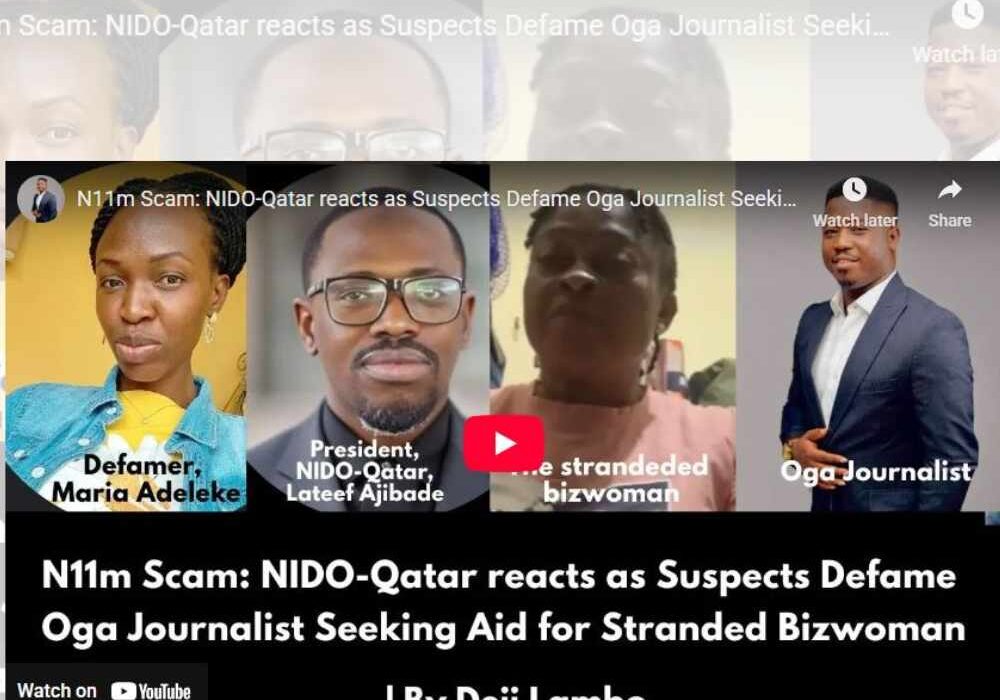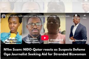 N11m Scam: NIDO-Qatar reacts as Suspects Defame Oga Journalist Seeking Aid for Stranded Bizwoman